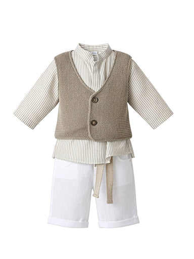 Boho style baptism outfit -Knitted linen vest A Boho style baptism outfit made of lovely Knitted linen vest and shirt in Mao style. This 5-piece s...