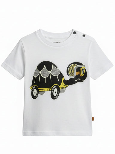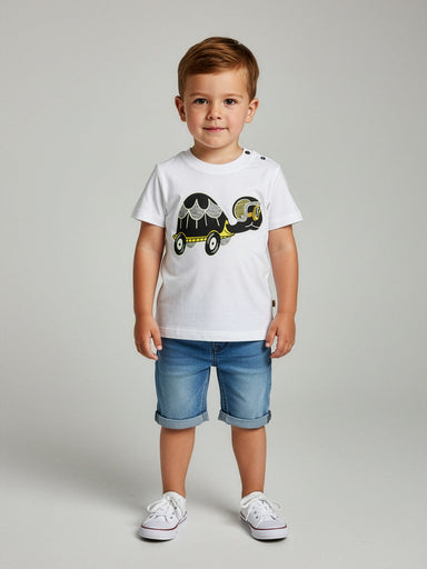 BABY BOYS CLOTHING Cotton t-shirt for baby boys, in white color with short sleeves, and lovely print. It’s very comfortable practical and soft.