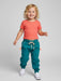 Trendy sweatpants for little girl with elastic waist in loose line, with side pockets. Very soft and practical. An ideal choice for every day.