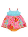 Lovely baby printed dress made of 100% cotton by Catimini. The outfit has on the back and button opening for ease of use. It's very comfortable practical and soft.