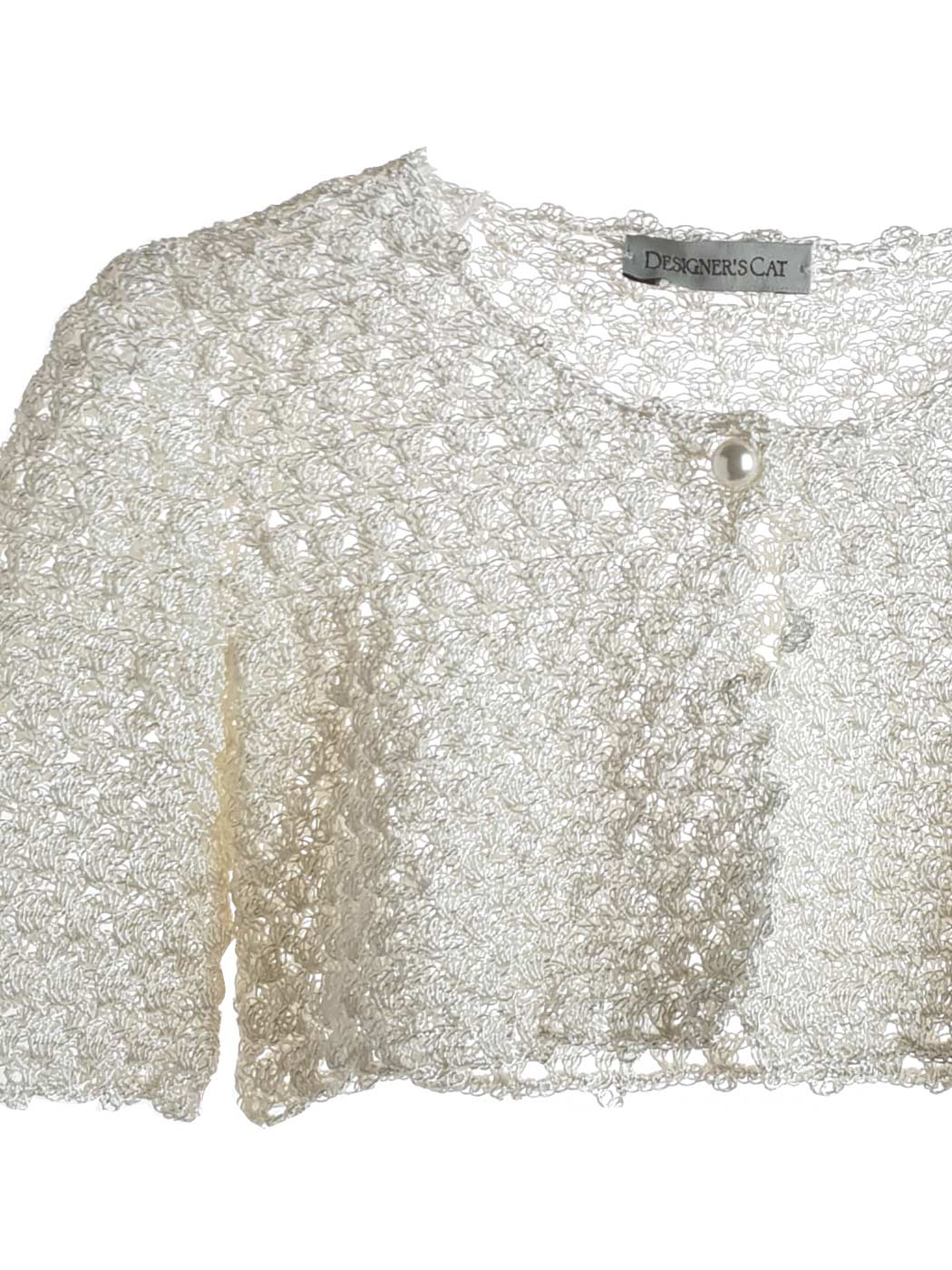 Handmade knitted bolero made of fine yarn. A beautiful top for special events. Dione bolero can be combined with matching dress from the "Designer’s Cat collection".