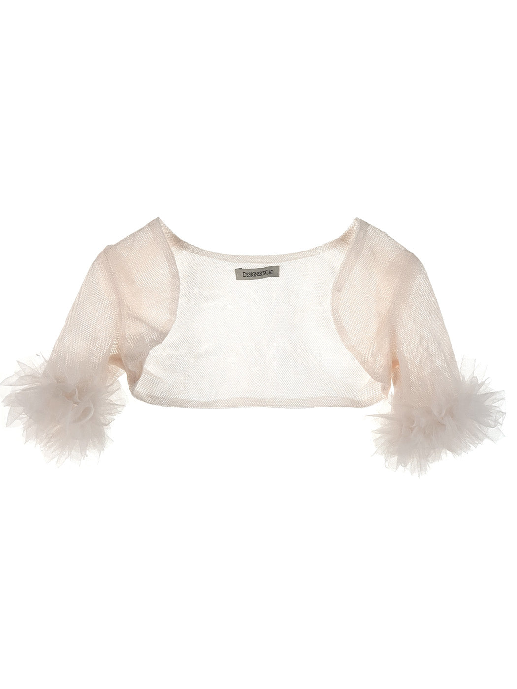 An elegant bolero with long sleeve made of fine tulle decorated with ruffles to the cuffs. It matches with most of the dresses from the "Designer’s Cat" collections.