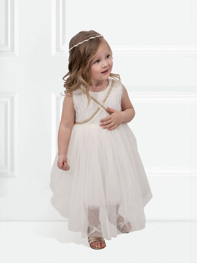 GIRLS’ CEREMONY CLOTHING Ancient Greek dress made of excellent soft tulle decorated with golden stripes. Inner lining is 100% cotton. A dress of ex...