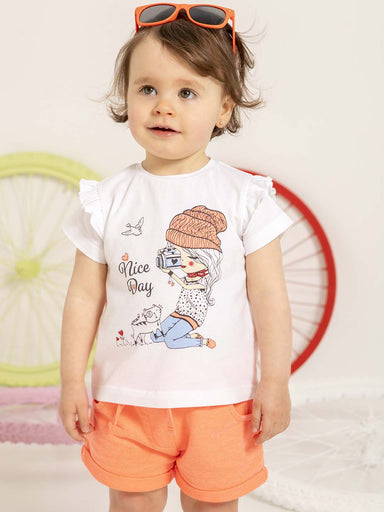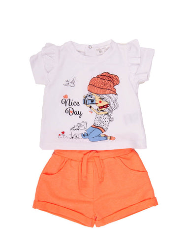 Baby outfit set 2pcs (Top and shorts) with lovely print. It is made in super soft, cotton jersey. t-shirt 100% cotton shorts 70% cotton – 28% pol...