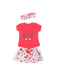 Baby outfit 3 pcs, skirt, t-shirts and hair ribbon decorated with a lovely print. Inner lining of the skirt is 100% cotton.