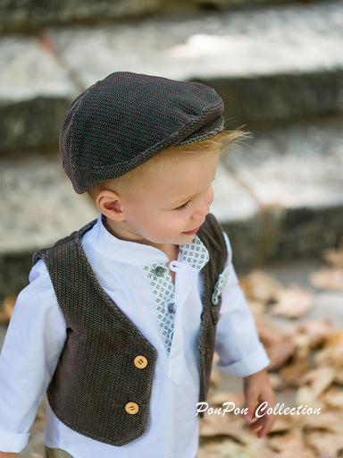 Elegant Tweed Cap for boy, for special occasions as the baptism. Roudi cap is perfectly combined with the outfits of the Designer's Cat collection....