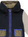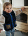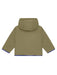 Reversible jacket for little boy, in blue and army color, with hood. It's very comfortable practical and soft. This jacket can be worn on one side with a plain look (green army color) or on the other side with the faux fur in blue color.