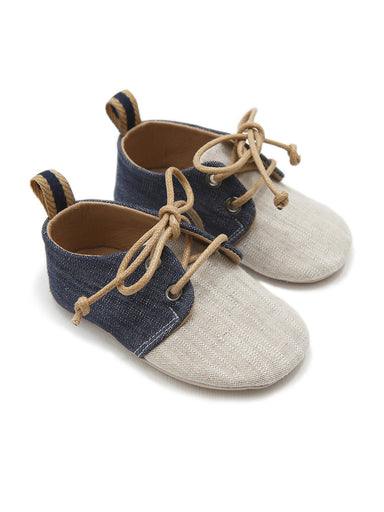 Lovely crib shoes made entirely of excellent quality leather in the inner lining, insole and outsole. Externally lined with cotton and linen fabri...