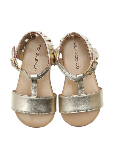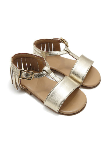 Peep Toe Leather shoes with strap for girl, in gold color. Shoes made entirely of high quality leather, with a leather insole that follows the foot...