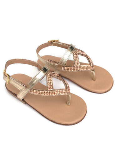 MONNALISA GIRL'S SHOES Wonderful slippers-sandals made of faux suede, with all-over rhinestones and flat rubber sole for comfort. The shoes are dec...