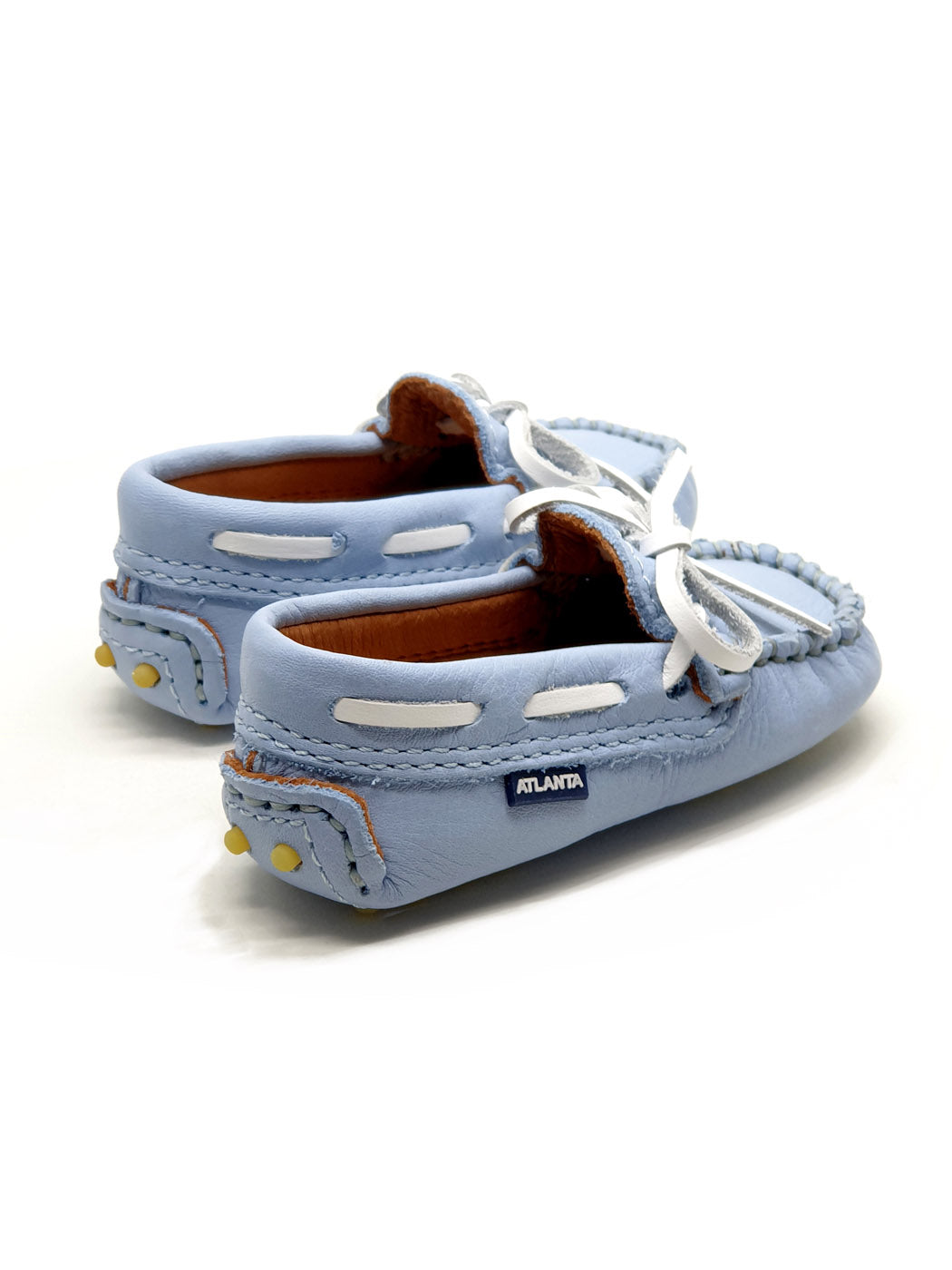 Baby Moccasins in Sky blue smooth leather with White Laces