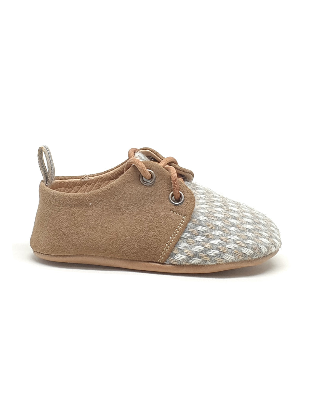 Handmade crib shoes made entirely of excellent quality leather both externally and internally, in the inner lining, insole and outsole. Designed for any occasion. They match perfectly with outfits for boys from the DESIGNER'S CAT collection and are available in 16-17 and 18-19 sizes.