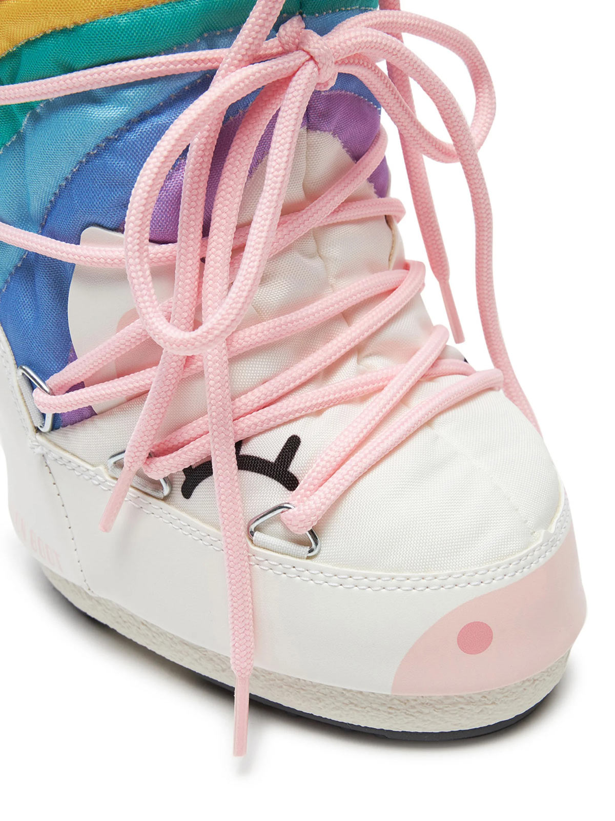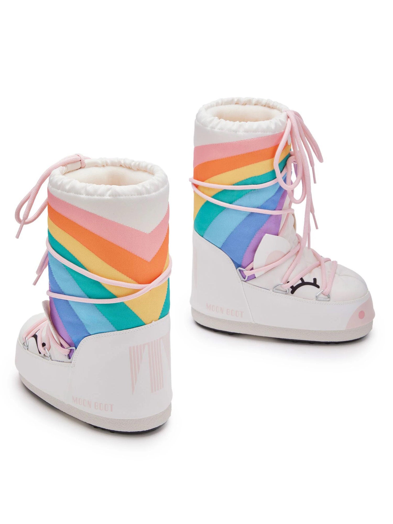 Kids' snow boots are made of 100% water-repellent material, inspired by the 1969 lunar landing, the inimitable Icon riffs on high-technology astronaut gear. This unicorn boots are insulated, fitted with a lightweight mid sole and features suction pads on the rubber tread sole that offer serious ground control.