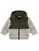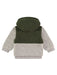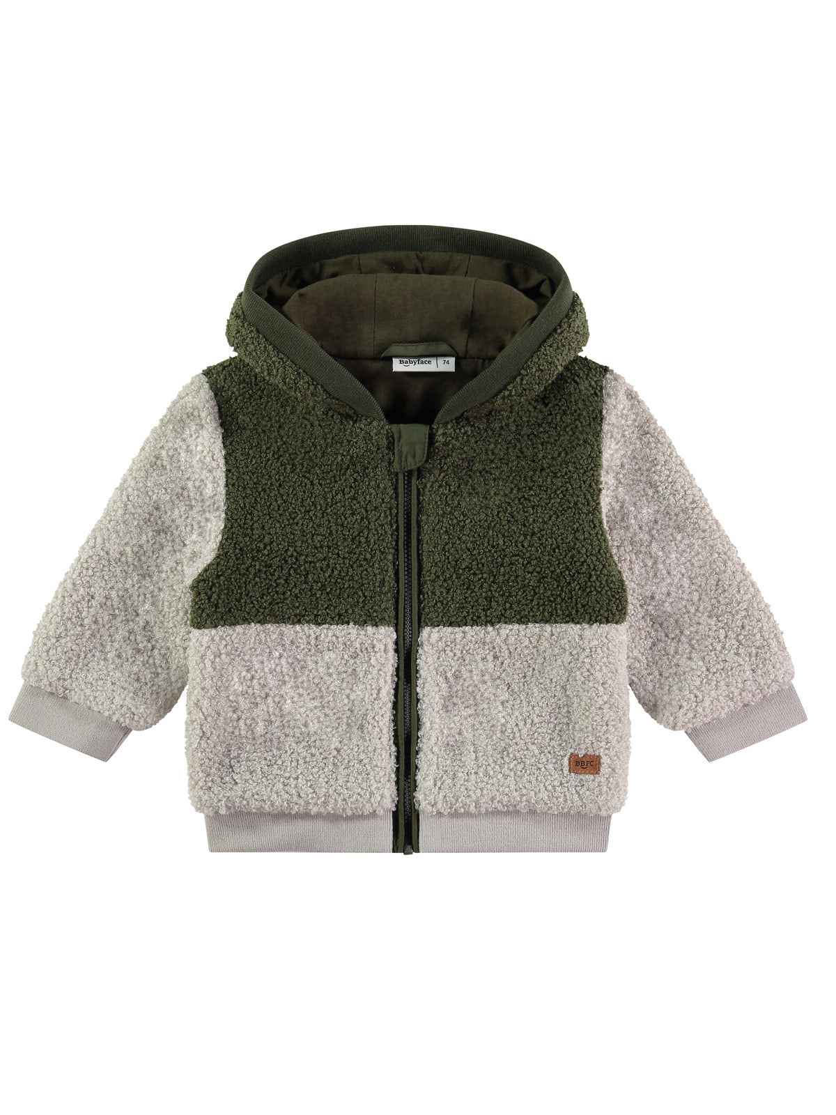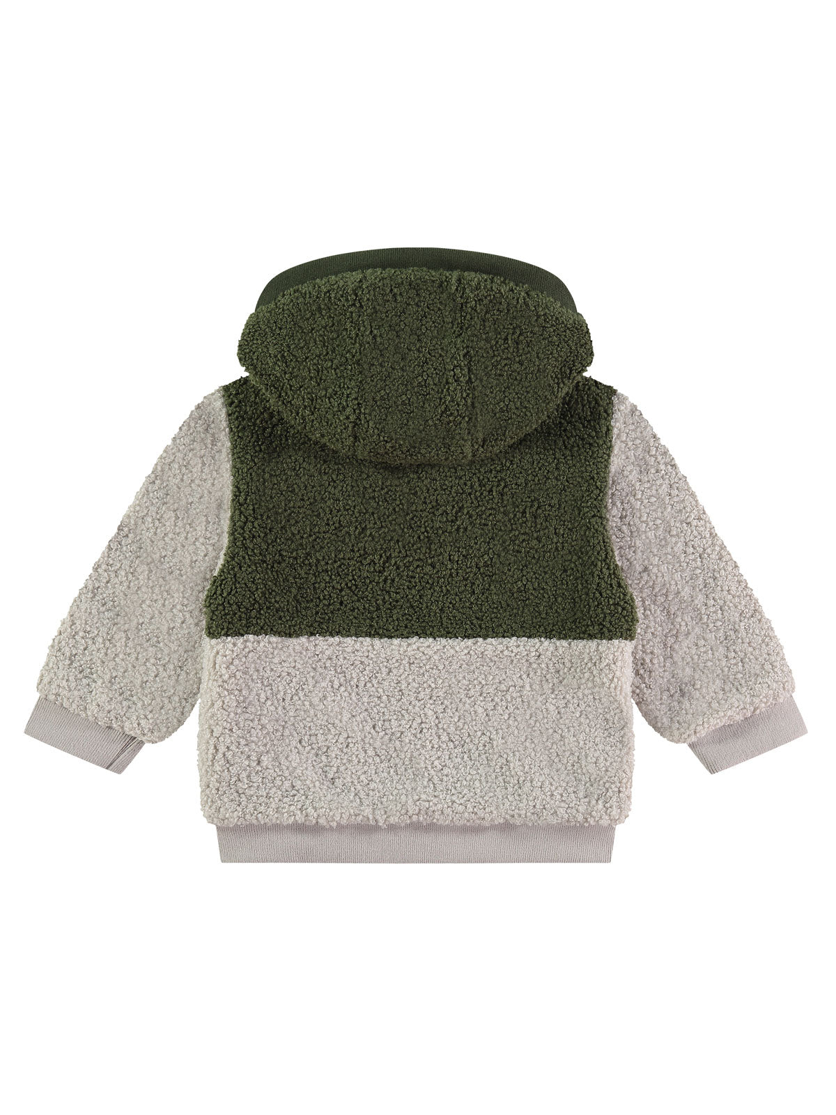 Lovely baby boys' soft jacket with hood, in bicolour, green/light grey, made of bouclé faux fur with cotton lining. It's very comfortable practical and soft. Ideal choice for every day.