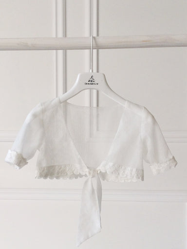 An elegant bolero  with gathered tulle wing sleeves.  It is decorated with lace trimmings. It can be combined with matching dresses from the "Desig...