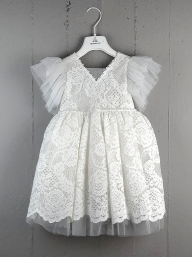 GIRLS’ CEREMONY CLOTHING Designer's Cat – Long Renaissance-style dress, for little girls, made of fine French lace on soft tulle. Round neck, skirt...