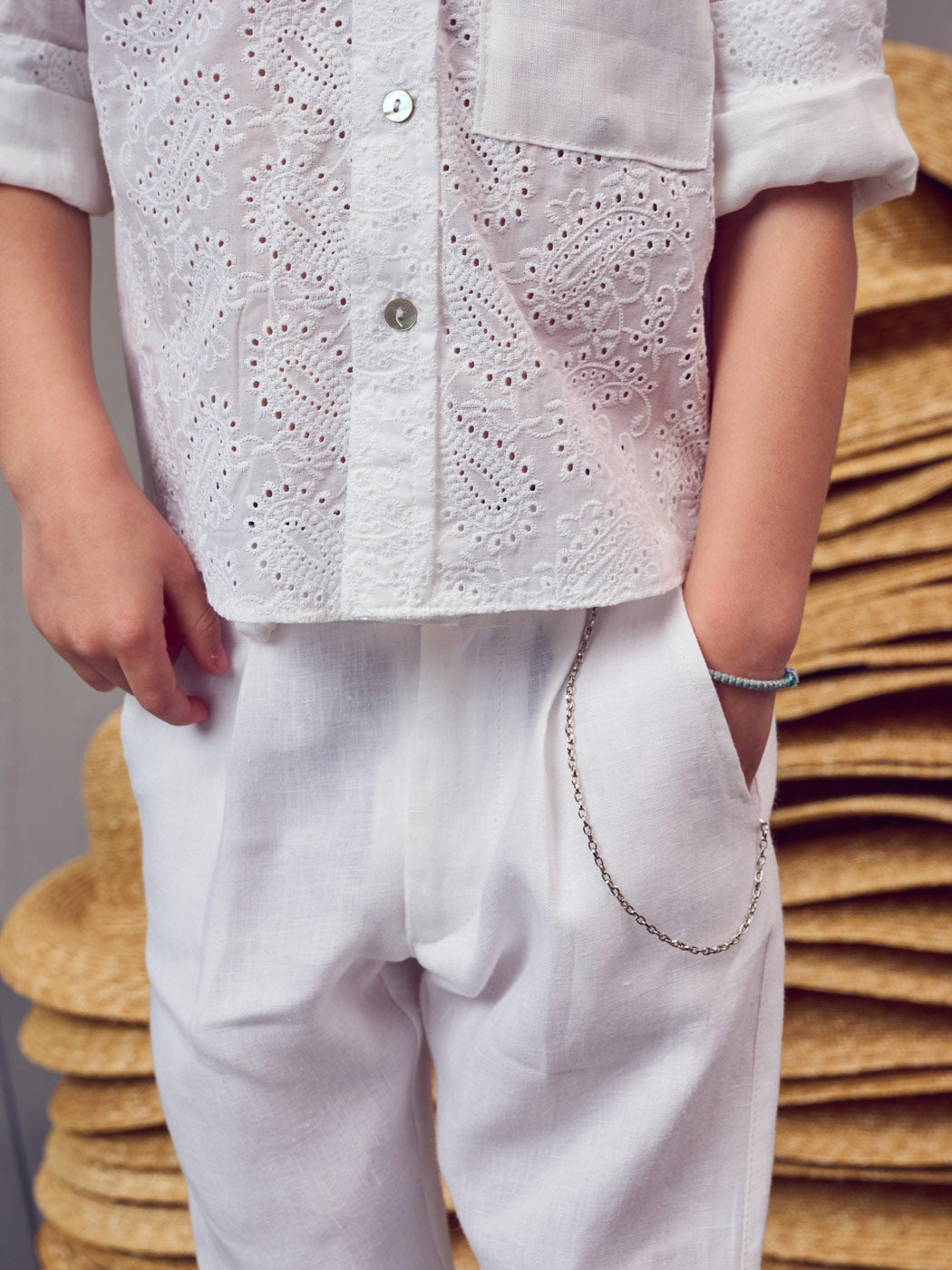 Baptism outfit 3pcs with Boho embroidered shirt - SONN