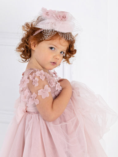 GIRLS’ CEREMONY CLOTHING So cute midi dress, made of excellent soft tulle in vintage pink color. It decorated with cap sleeves and slanted ruffles,...