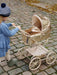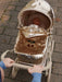 An amazing vintage style doll pram. It is designed with four large wheels, soft quilted fabric, delicate scallop edges, and a mattress. Features a softly cushioned storage basket under the lift. The frame is made of metal with spongy soft handles for easy grip. The doll pram comes fully assembled and is easy to fold and store. Dimensions: Height: 90 cm Width: 41 cm Length: 71 cm W: 3,86 kg