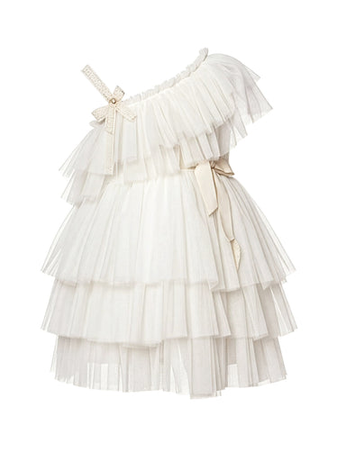 An elegant Charleston-line dress made of excellent soft tulle with one-shoulder and decorated with cotton wings. Inner lining is 100% cotton.A love...