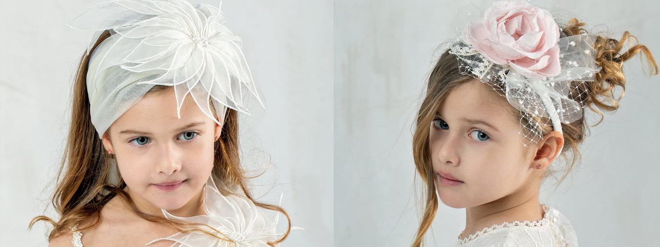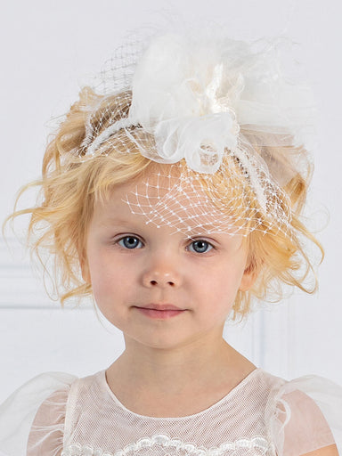 GIRLS’ ACCESSORIES Elegant handmade hat made of silk blend, decorated with flower and lace in off white color. It is perfectly combined with the dr...
