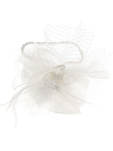 Designer's Cat Headband for ceremonies and special events. Elastic Headband decorated with tulle, veil, special lace and feathers. It can be combin...