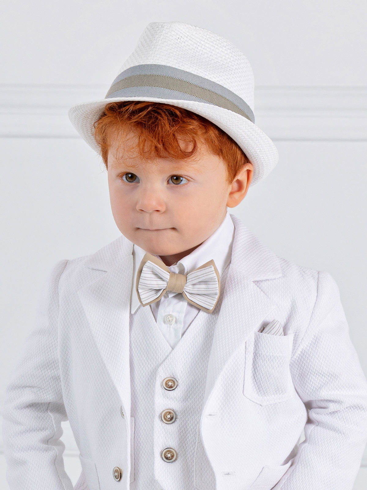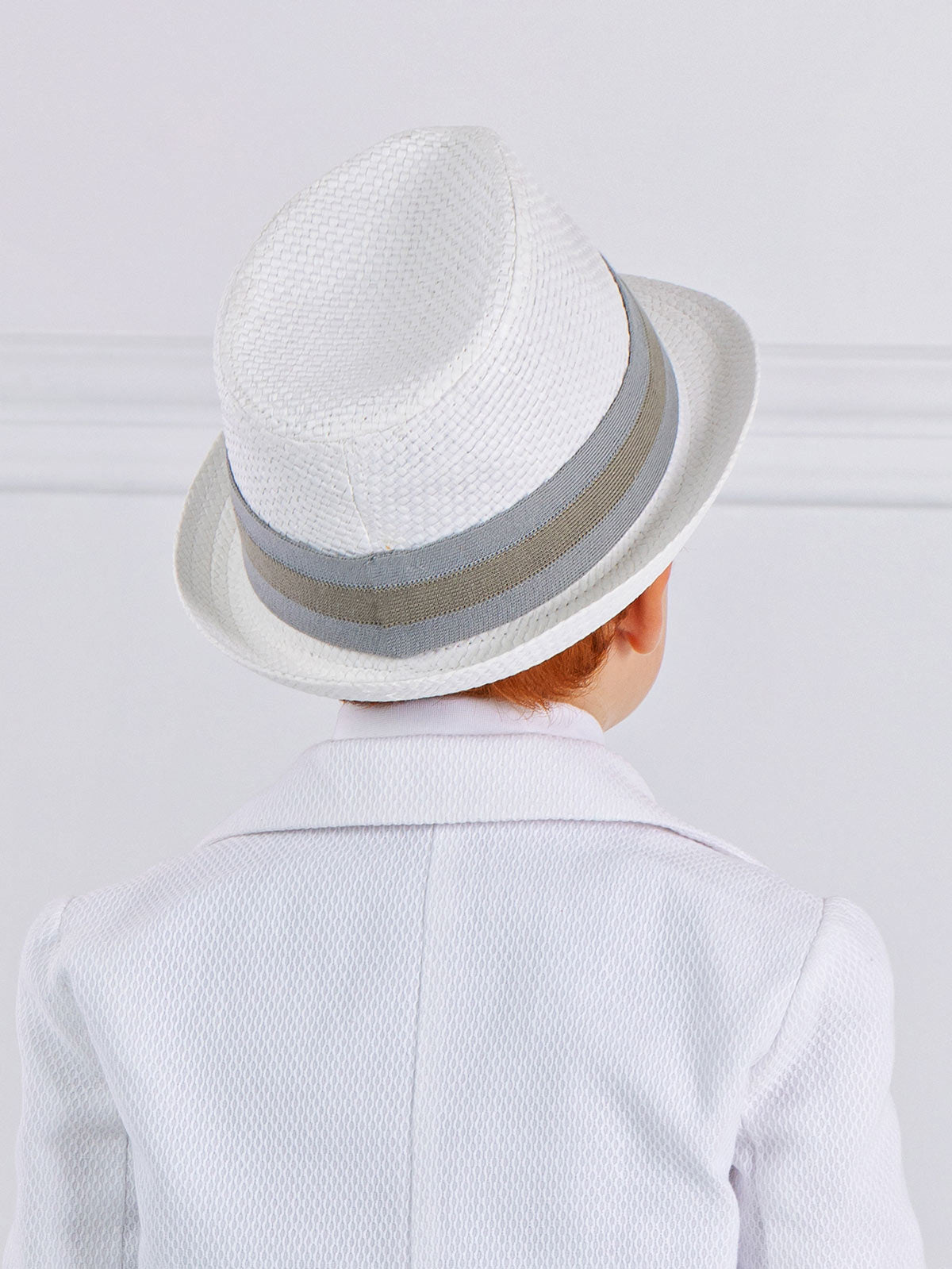 Elegant hat for boy, with regular brim decorated with grosgrain ribbon. A beautiful hat for special occasions as the baptism.