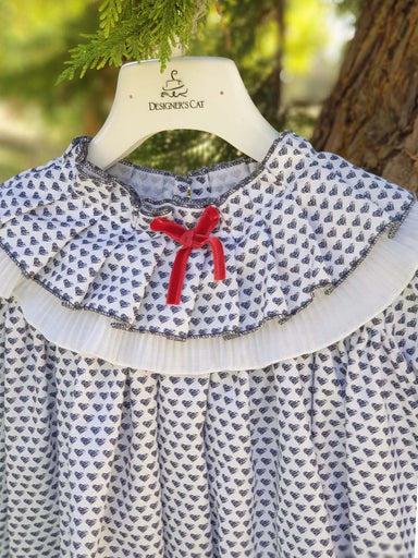 An elegant dress made of excellent mixed cotton fabric with big dots, decorated with handmade flowers in vintage color. Inner lining is 100% cotton...