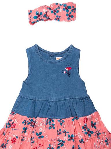 Baby outfit set 2pcs, dress sleeveless and hair ribbon. It is made in soft viscose decorated with lovely print of flowers. Top: 97% Lyosell- 3% v...