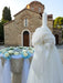 Christening candle Designer's Cat, decorated with tulle, feathers, vintage handmade flowers and maxi silk bow, made entirely by hand. It is combined with matching dress and accessories for the baptism event.