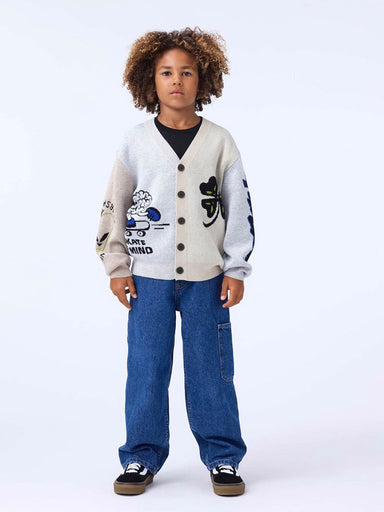 BOY'S CLOTHING Impressive multicolor knitted cardigan made of cotton and wool with V-neckline, buttons, ribbed placket and ribbed edges around the ...
