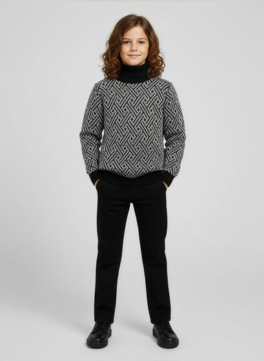 BOYS CLOTHES - Antony Morato Junior Sophisticated knitted cotton sweater with turtleneck, geometric designs, elastic waist & cuffs,very soft.It...
