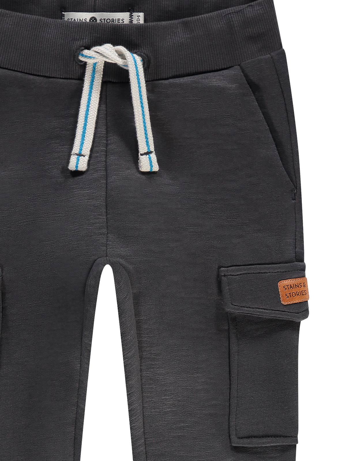 Modern cotton sweatpants for boy, in grey color. It's very comfortable practical and soft.