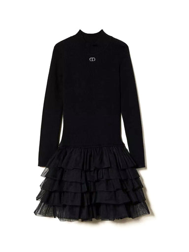 Twinset Girl's Clothing Girls’ knitted turtleneck sweater made of viscose blend with rib knit, long sleeves and Oval T logo plate at the front. The...