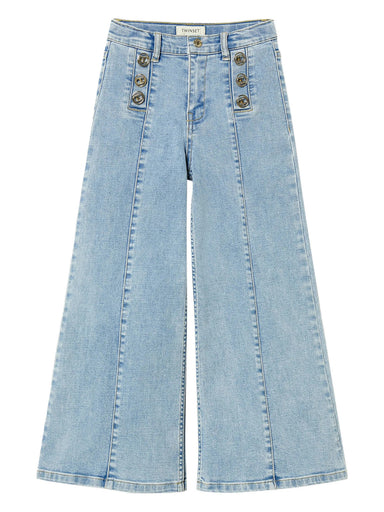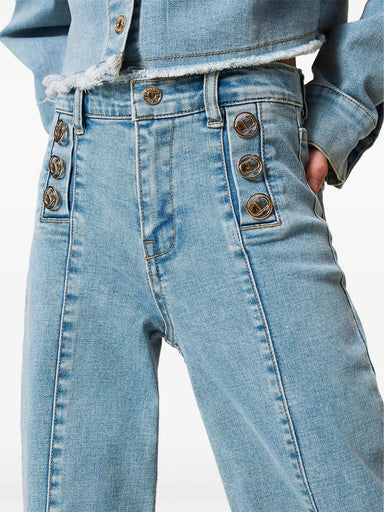 Twinset Girl's Clothing Trendy denim jeans for girls, with Oval T decorative buttons, zip and button fastening, front vertical seams, wide leg.