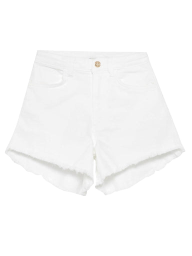 Twinset Girl's Clothing Girls' frayed "bull" denim shorts with zip and button fastening, five pockets, logo plate and fringed hem, straight fit.
