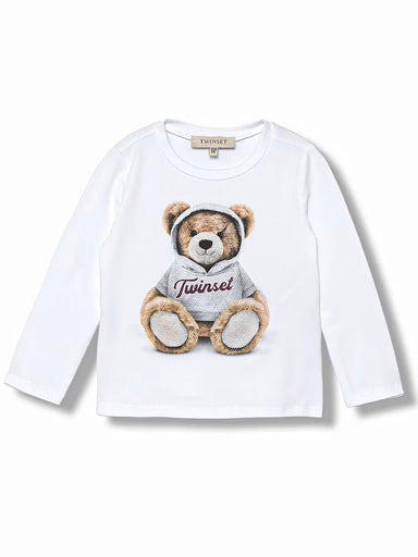 Twinset Girl's Clothing A cotton jersey T-shirt for the little ones with cute applique teddy bear on the front, round neck, long sleeves, regular f...