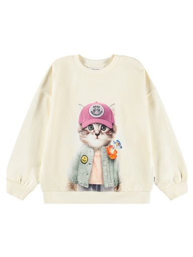 GIRL'S CLOTHING A lovely Off-white sweatshirt in organic cotton, soft and warm to wear. The sweatshirt has a loose fit, round neckline, and rib cuf...