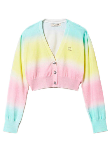 GIRLS' CLOTHING A Classic bolero cardigan for sleeveless dresses, in soft yarn, decorated with strass logo and heart button. BRAND Code:17CCAD Str...