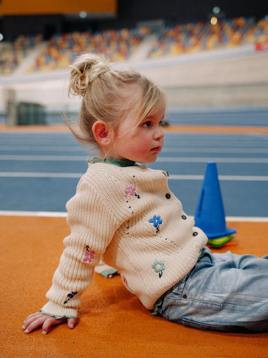 GIRLS' CLOTHING A cotton Knitted cardigan in sweet cream color for girls, with lovely embroidery small flowers. It’s very comfortable and practi...