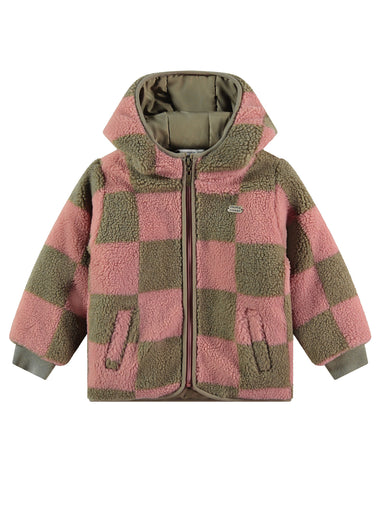 GIRL'S CLOTHING Fashionable jacket in soft snug fabric, imitation fur made of recycled polyester. The jacket has a stand-up collar, side pockets, a...