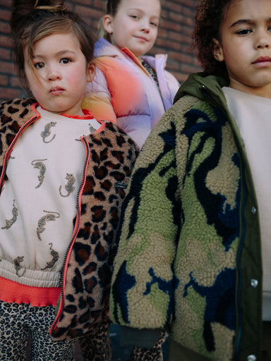 GIRLS' CLOTHING Modern girls' reversible jacket with animal print on one side and army green color on the other side. It's very comfortable practic...