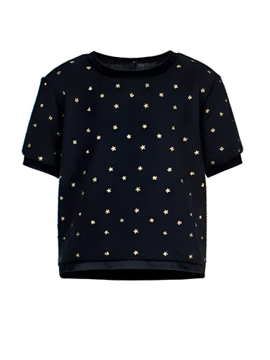 GIRLS' CLOTHING Elegant top for girl made of boucle fabric with velour details, decorated with sequins and beads. It combines with shorts or pants ...
