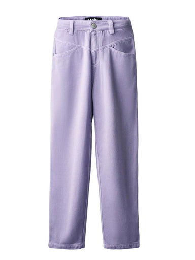 GIRLS' CLOTHING Trendy denim jeans in sweet light purple color with matching stitching made of cotton and viscose. These jeans have stitching on th...