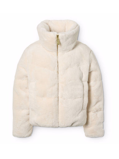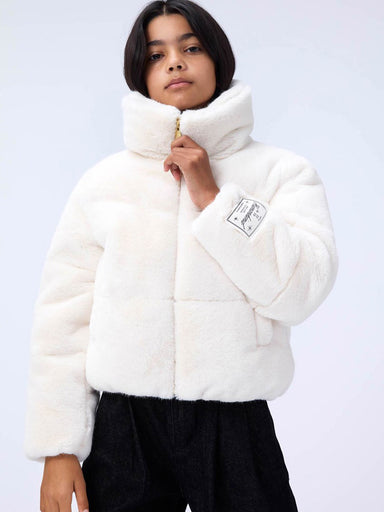 GIRL'S CLOTHING Fashionable jacket in soft snug fabric, imitation fur made of recycled polyester. The jacket has a stand-up collar, side pockets, a...