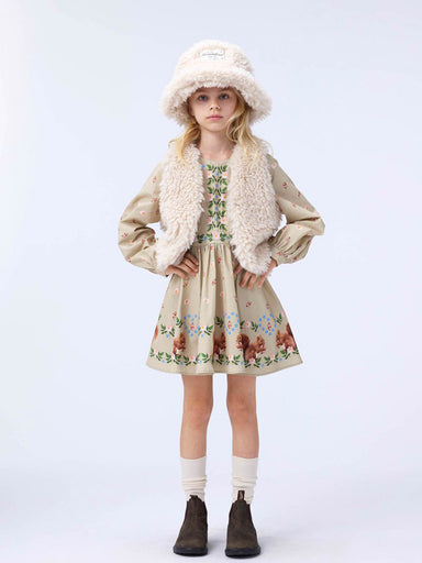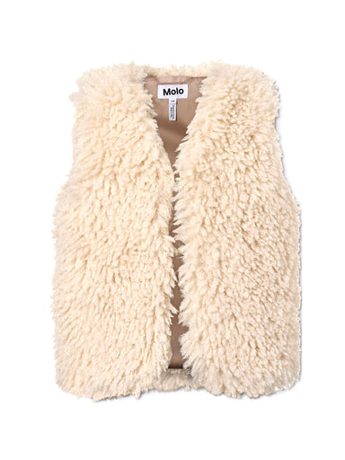 GIRL'S CLOTHING Trendy fluffy vest in teddy for girl, very soft and comfortable, made of recycled polyester. The vest closes with a small hook comp...