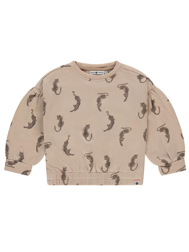 GIRL'S CLOTHING A lovely Off-white sweatshirt in organic cotton, soft and warm to wear. The sweatshirt has a loose fit, round neckline, and rib cuf...