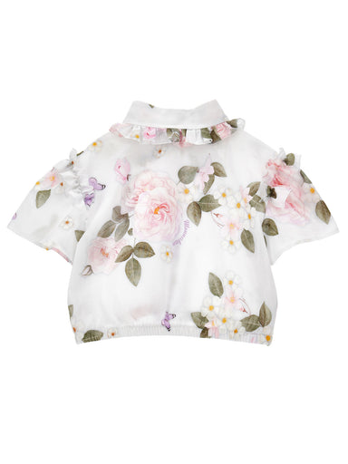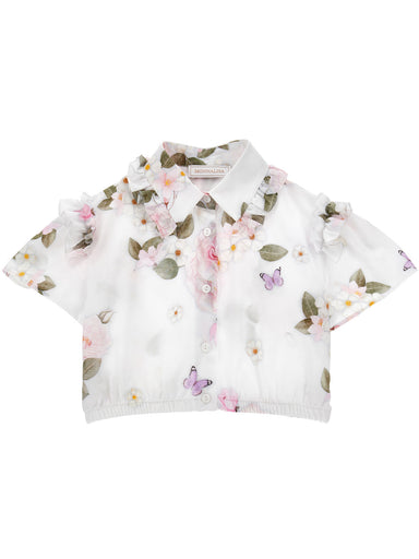 Embroidered viscose twill shirt decorated with embroidered collar and ruffles, balloon sleeves with cuffs and lovely buttons. Art. 1103000103 Main...