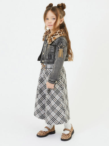 Stretch poplin loose fitting trousers, removable, adjustable braces with metal loops. Art.221GJ2024 A new and versatile style for school, after sch...