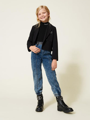 Twinset Girl's Clothing Trendy denim jeans for girls, with Oval T decorative buttons, zip and button fastening, front vertical seams, wide leg.